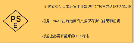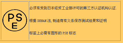 日本的DENTORL法(電器裝置和材料控制法)規(guī)定,498種產(chǎn)品進(jìn)入日本市場(chǎng)必須通過安全認(rèn)證。其中,112種A類產(chǎn)品應(yīng)取得菱行認(rèn)證,340種B類產(chǎn)品應(yīng)取得圓行認(rèn)證。PSE目錄清單!